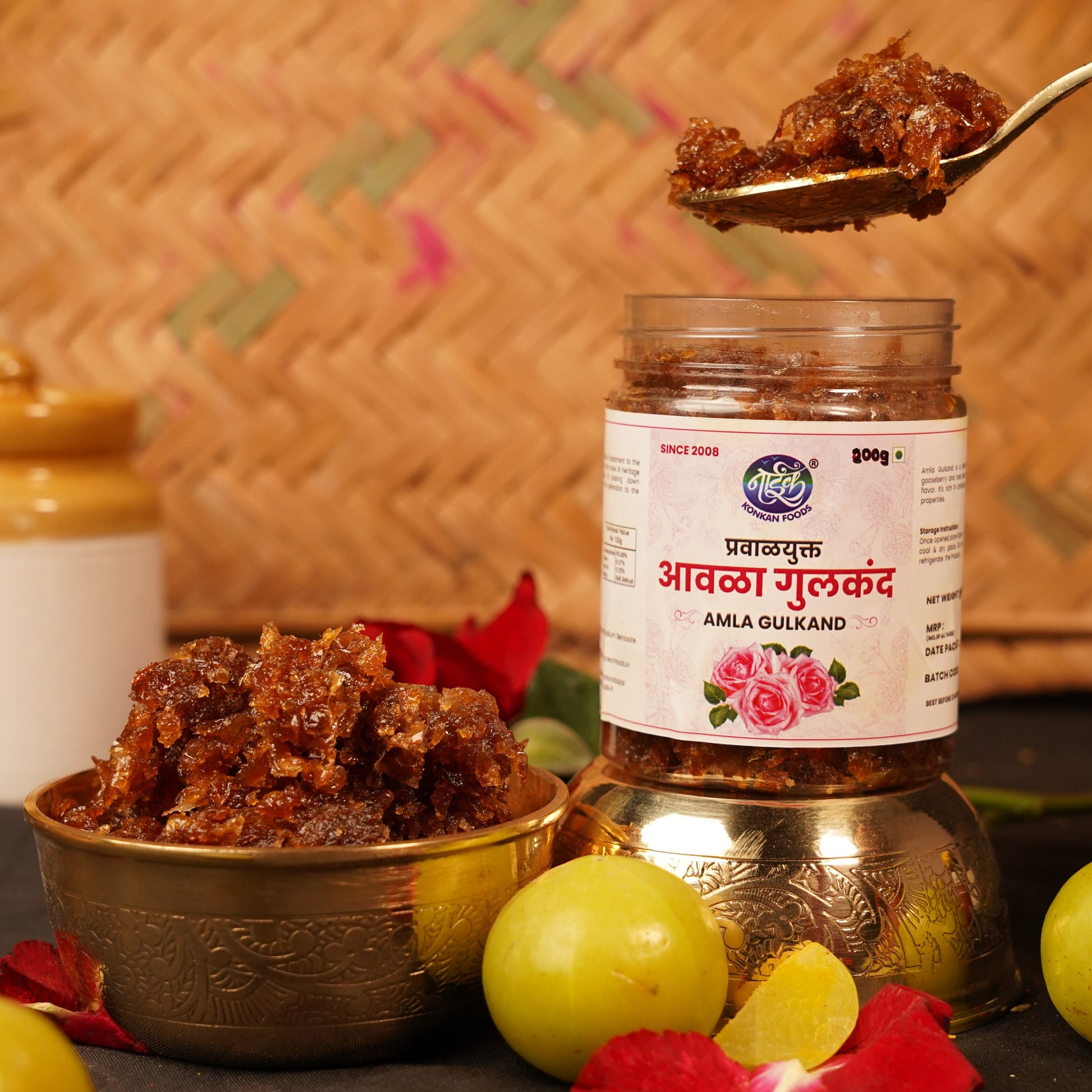Harness the power of amla gulkand, a potent blend of Indian gooseberry and rose petal jam. Packed with antioxidants and essential vitamins, our Amla Gulkand offers numerous health benefits including improved digestion, boosted immunity, and enhanced skin health. Experience the natural goodness of amla gulkand today.