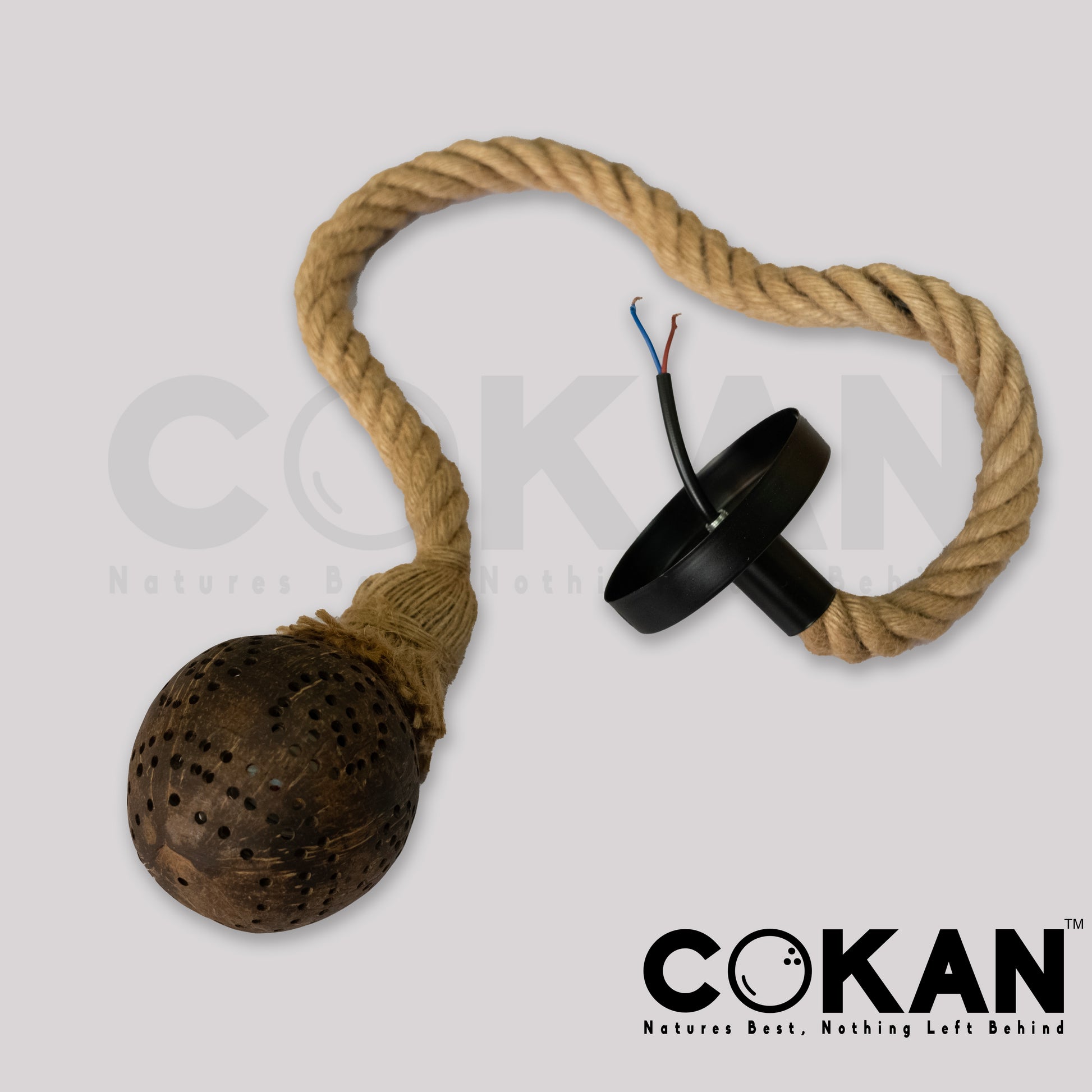 This unique pendant lamp is crafted from the discarded shells of coconuts, providing a sustainable and eco-friendly lighting option. Its natural texture and warm tones add a touch of nature to any room. Expertly crafted, it's a beautiful statement piece with a positive impact.