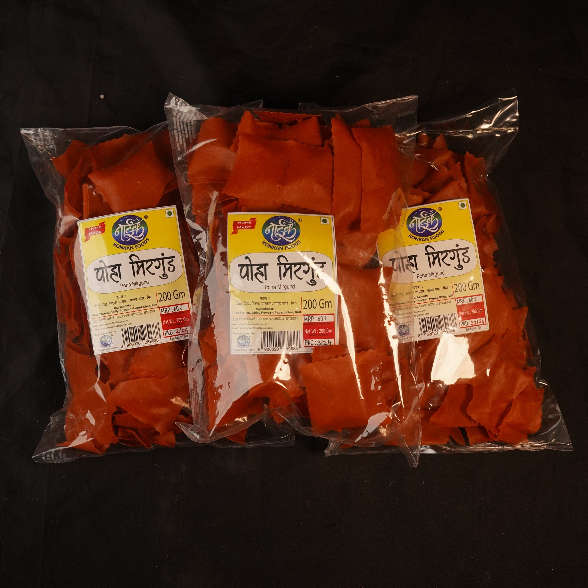 Introducing Poha Mirgund, the perfect papad for your snacking and chakna needs. With a spicy and salty flavor, this papad will add a kick to your snacking game. Get ready to up your snacking and chakna game with Poha Mirgund!
